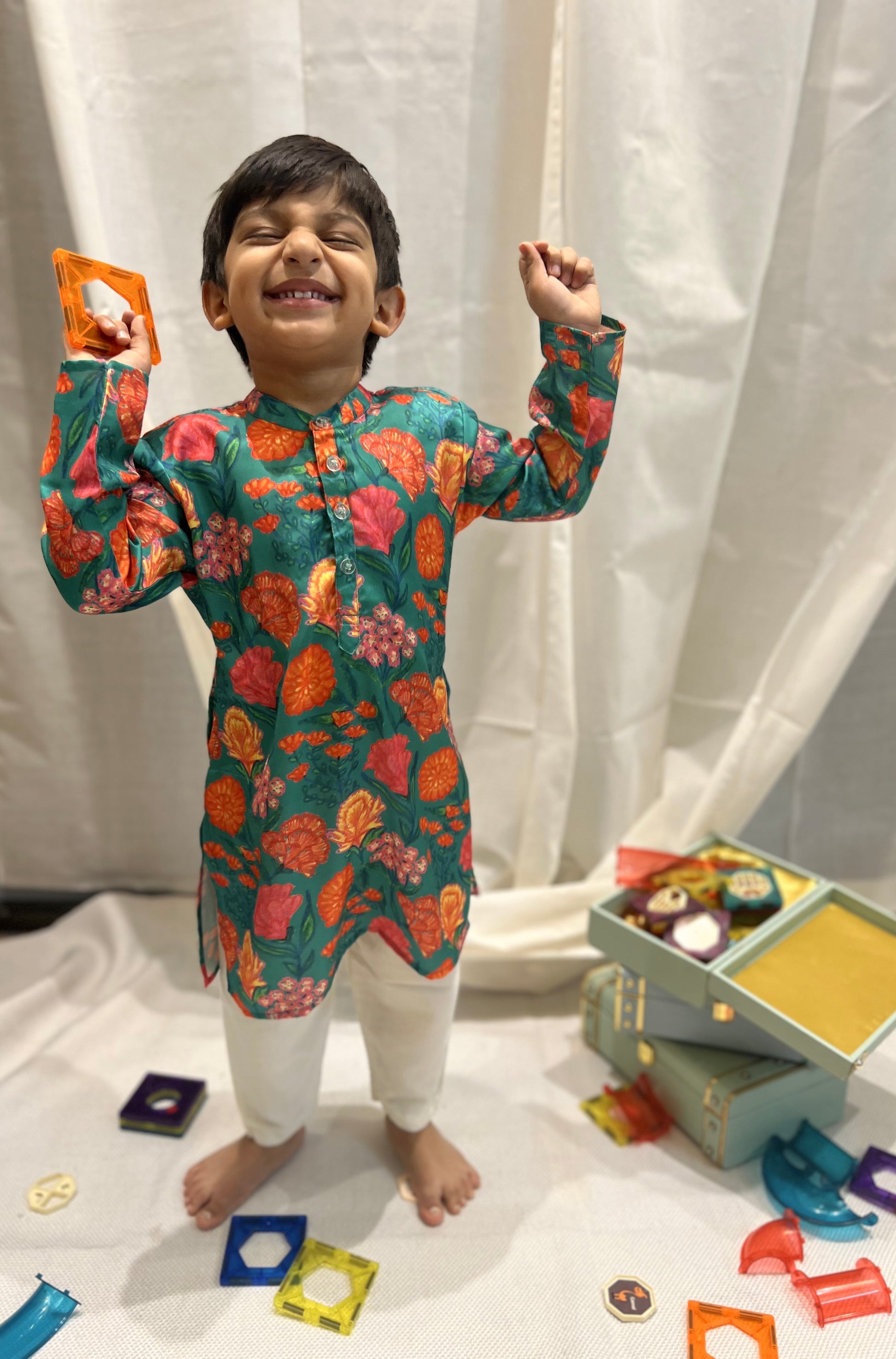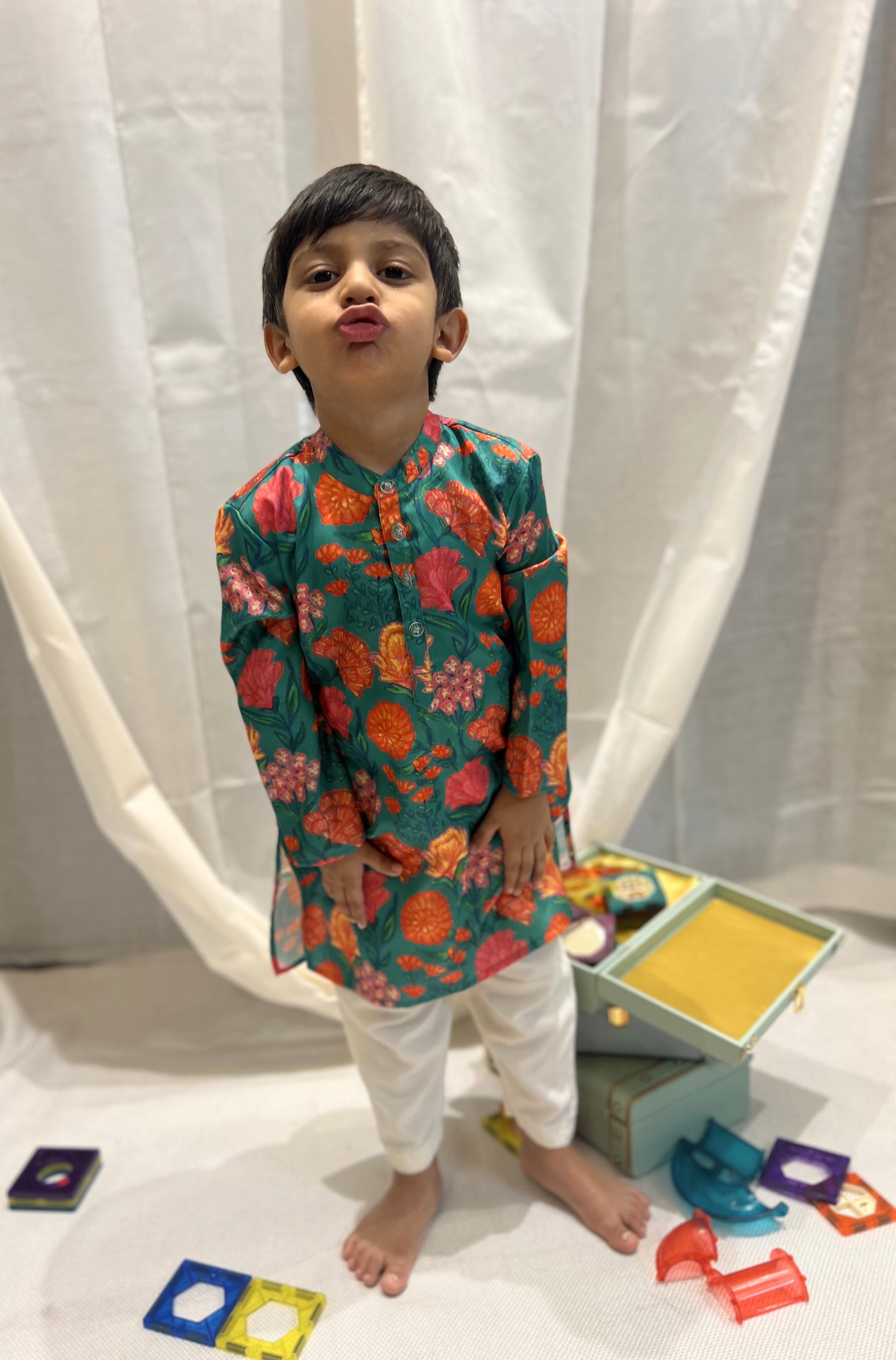 This Green floral kurta for boys is made with premium modal silk, offering superior comfort with a hand painted design for a unique look. Get this stylish yet comfortable kurta and get the perfect look for any occasion.