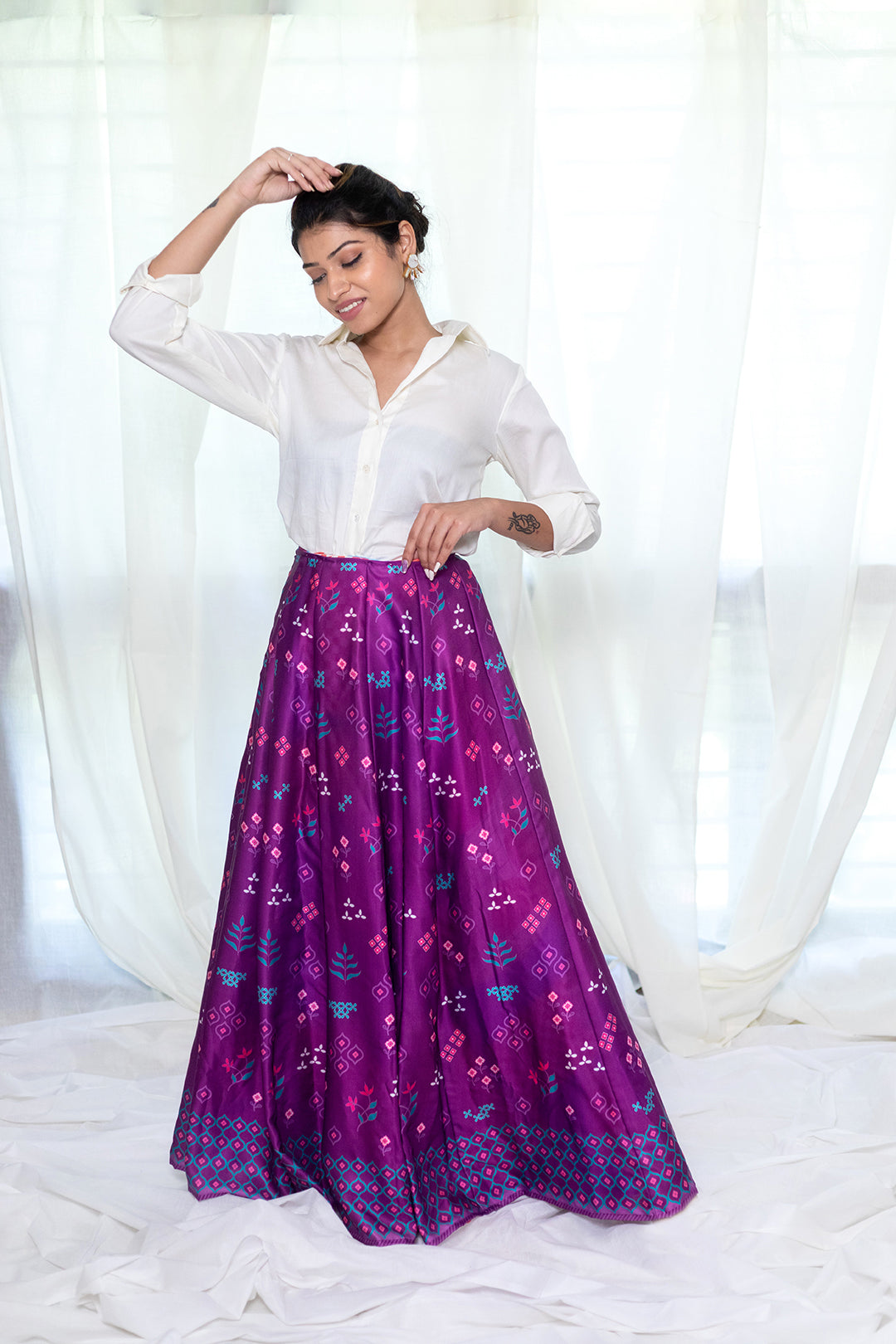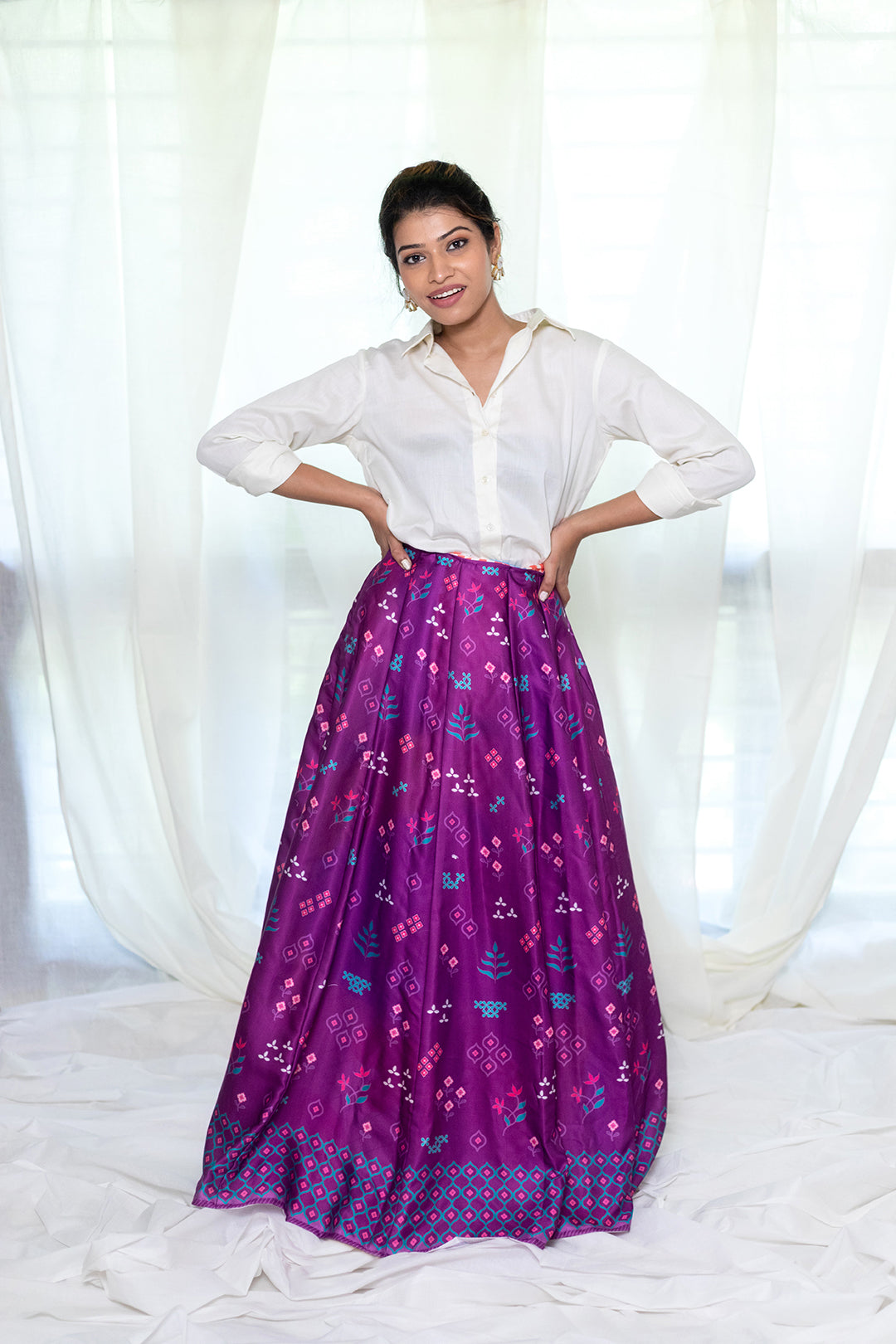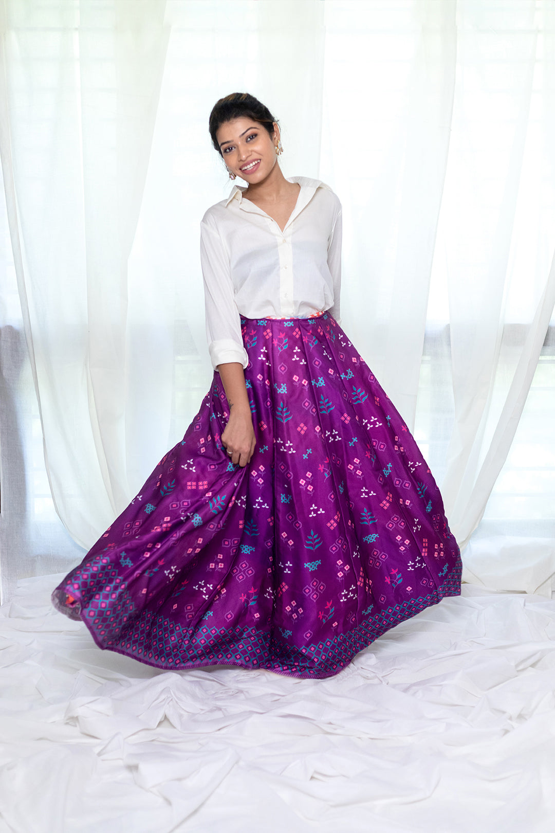 This beautiful printed purple lehenga is perfect for a Mehndi or haldi function for a bride or side bride. You can pair it with a white shirt or crop top and some jewellery and you are sorted. Super comfortable & lightweight. Easy to carry for a destination wedding.