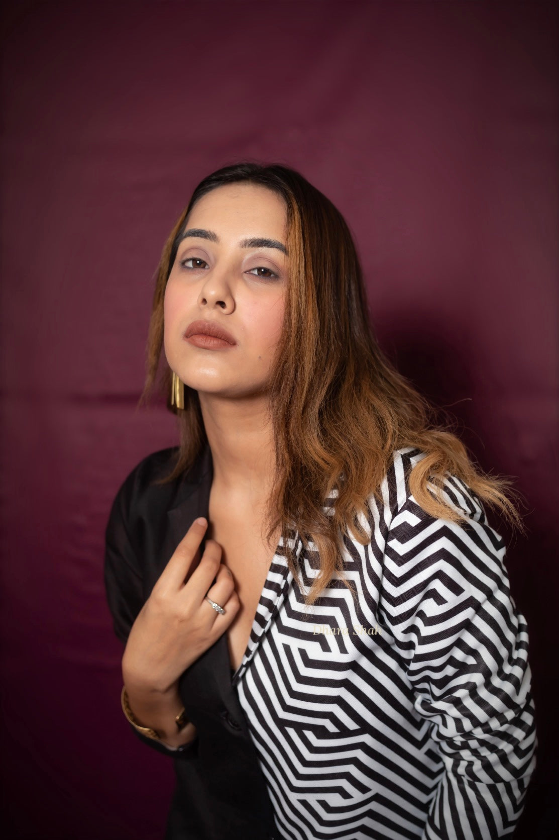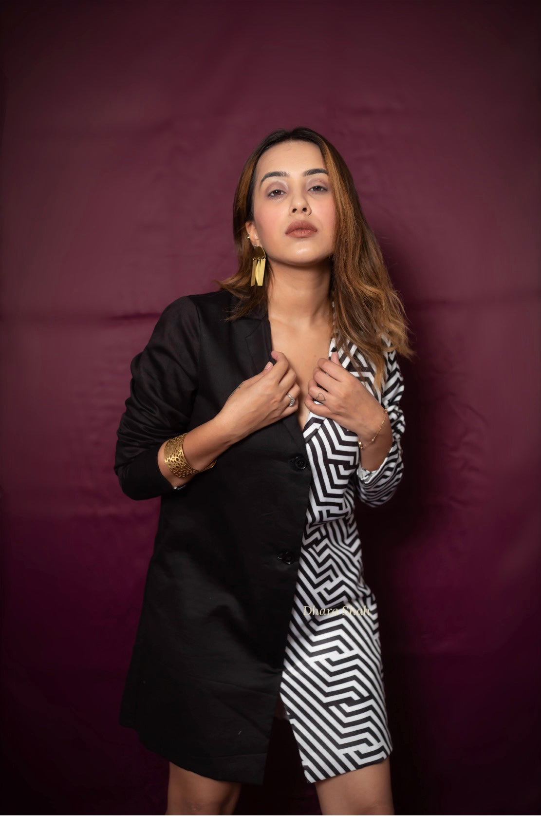 Cotton based Color block jacket-dress. It’s eye catching printed jacket dress (with pocket) which you can even carry as a jacket!