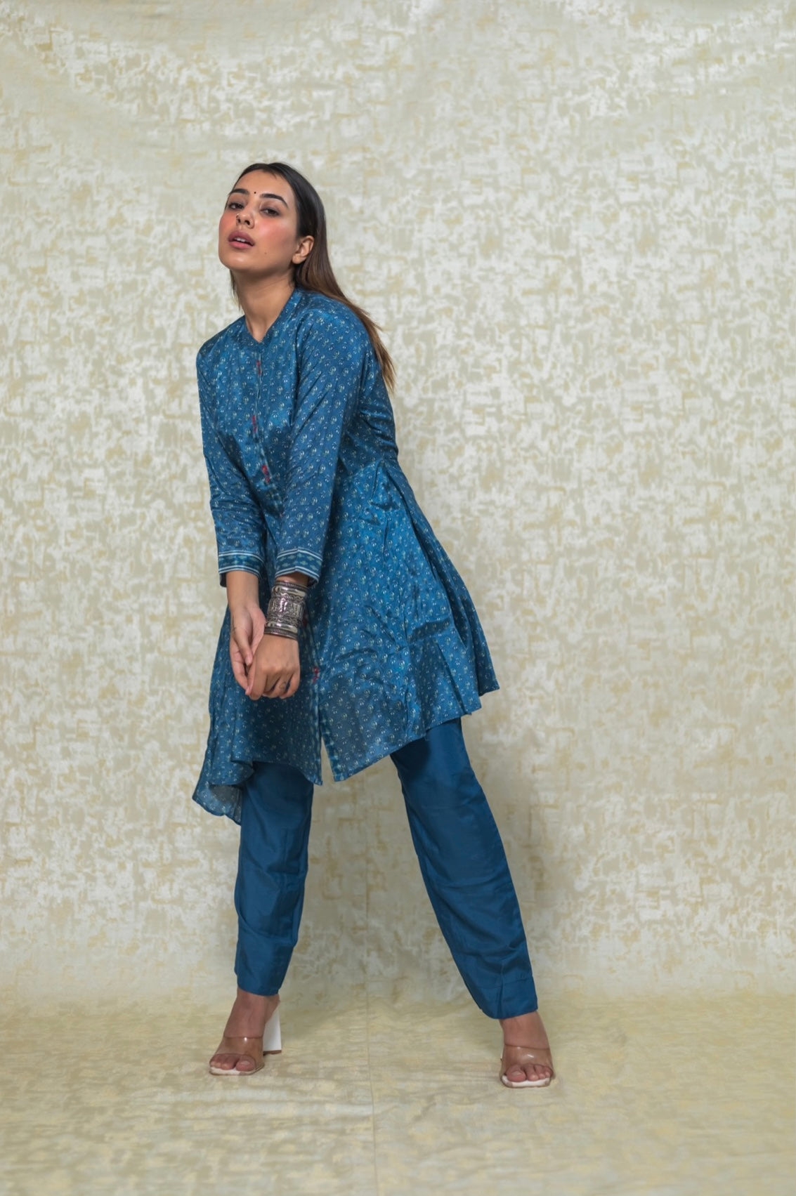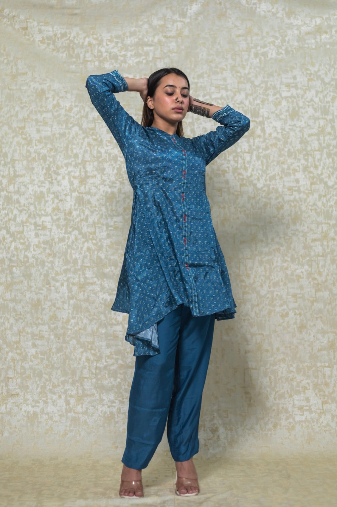 Printed blue gaji asymmetric coord set